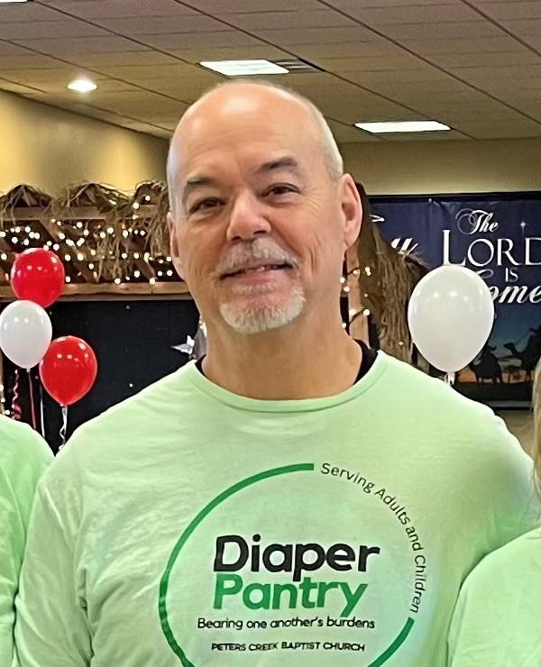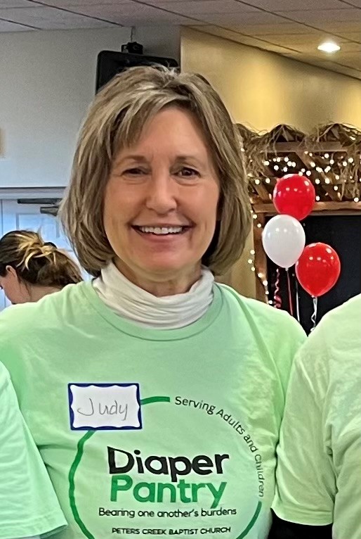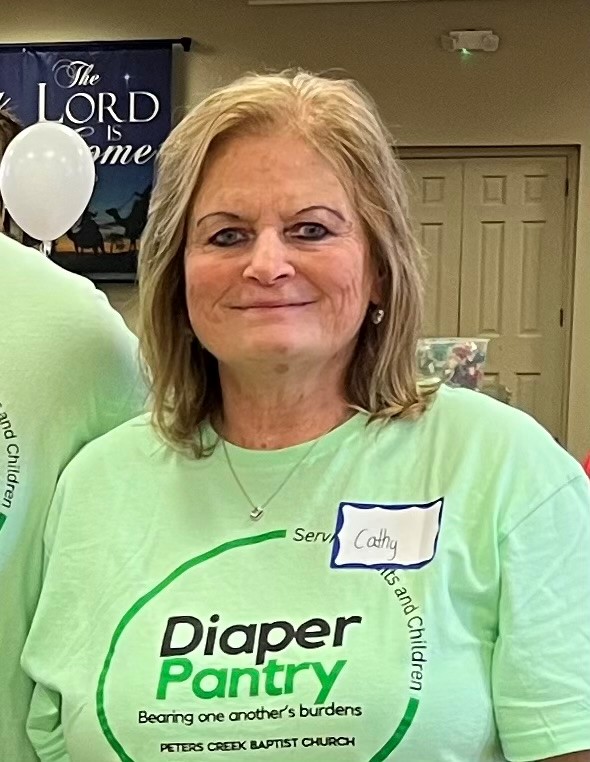 After a brief conversation with the Sr Pastor of Peters Creek Baptist Church in June of 2021, Cathy saw a need and launched the Diaper Pantry to fill that demand. Her love of serving others is very apparent as she has served in the caregiving world for over the past 30 years. Her love of encouraging, nurturing and providing for those less fortunate than others has brought her to her hearts delight by meeting with moms & dads, teens and widows who visit the Diaper Pantry monthly.